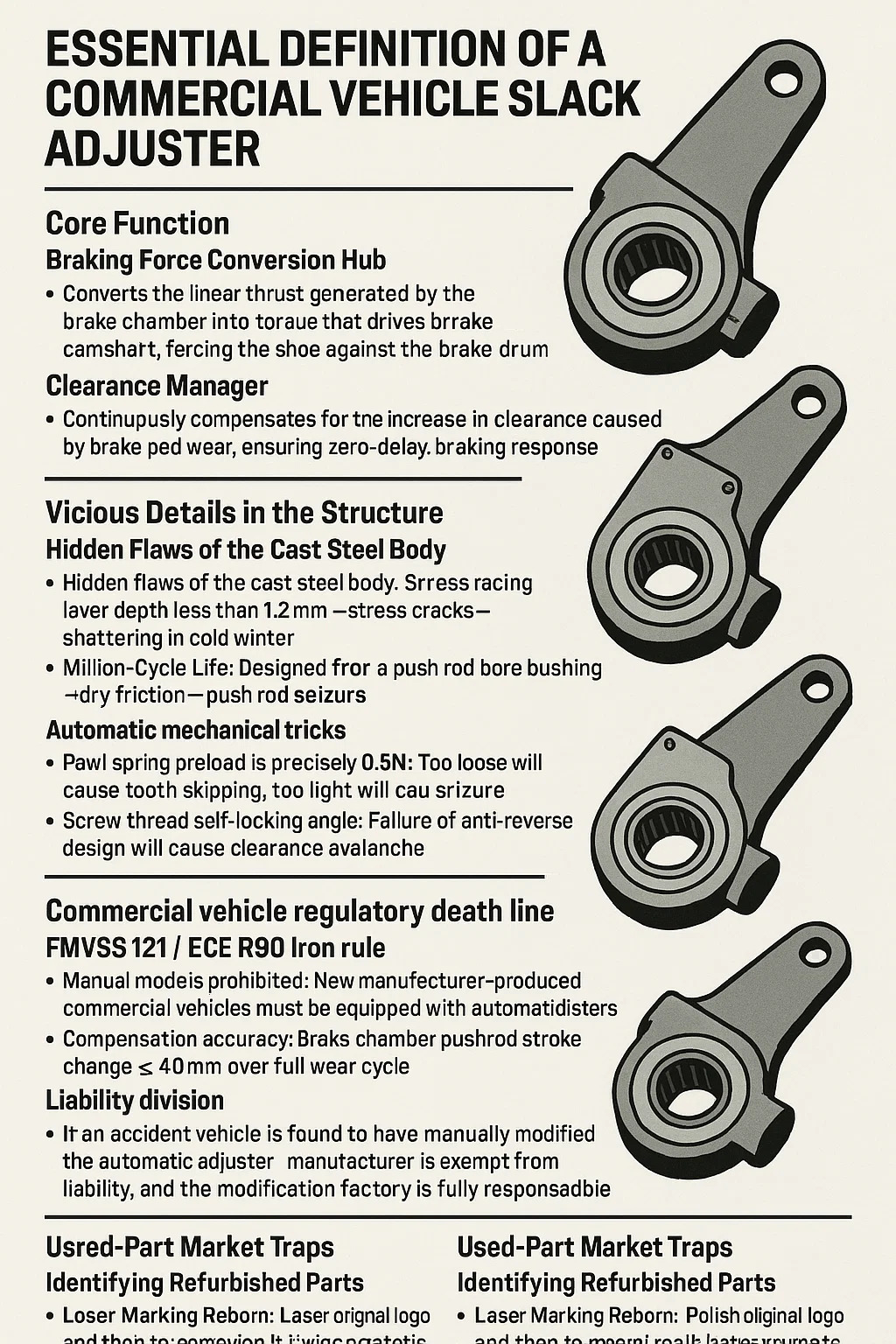 Ikke-selvsmørende utforming av skyvestangens boring → tørr friksjon → skyvestangbeslag. Automatiske mekaniske triks: